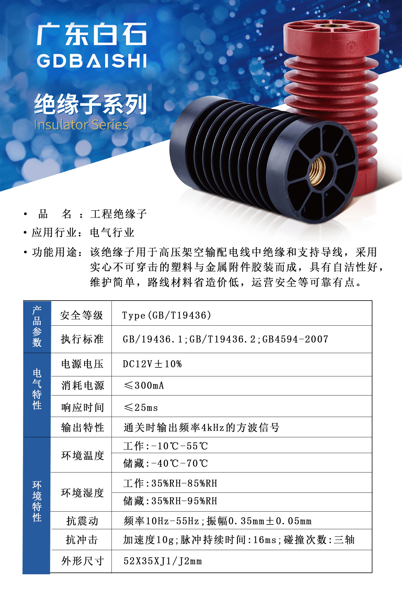 工程塑料絕緣子(外觀設(shè)計,專利號:ZL201230642875.3)。
