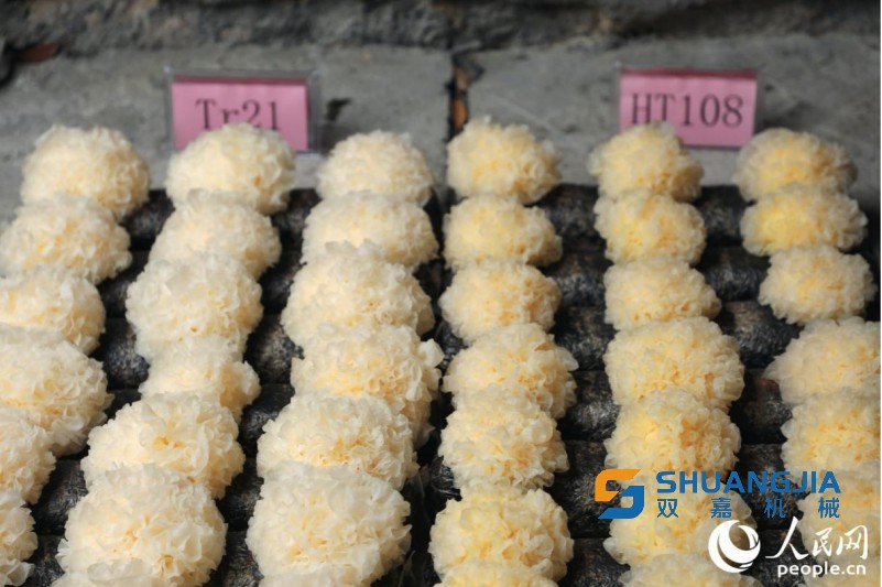 孫淑靜介紹,從現(xiàn)場(chǎng)測(cè)產(chǎn)情況來(lái)看,新菌株的子實(shí)體呈淡黃色、朵形圓整緊致、耳片厚實(shí)內(nèi)卷,平均產(chǎn)量相較目前主栽品種高出10%,總酚、黃酮含量分別提高約55%、60%,表現(xiàn)出豐產(chǎn)性好、活性成分含量高的特點(diǎn),十分適合用作銀耳深加工產(chǎn)品原料。