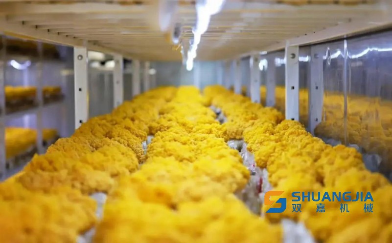 據(jù)介紹,36平方米的方艙可放置2000個菌棒,單茬產量約4000斤。相比傳統(tǒng)模式,方艙單位產出高、部署靈活,更能盤活閑置土地。